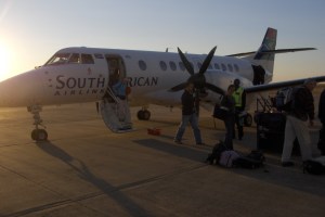 As we waited to load our embarrassing amount of luggage (enough to fill a pickup truck and then some) the surrounding mountains came alive in shades of reddish brown – a desert like image full of scrub bushes and other evidence of the 5 year drought that southern Africa has been suffering.