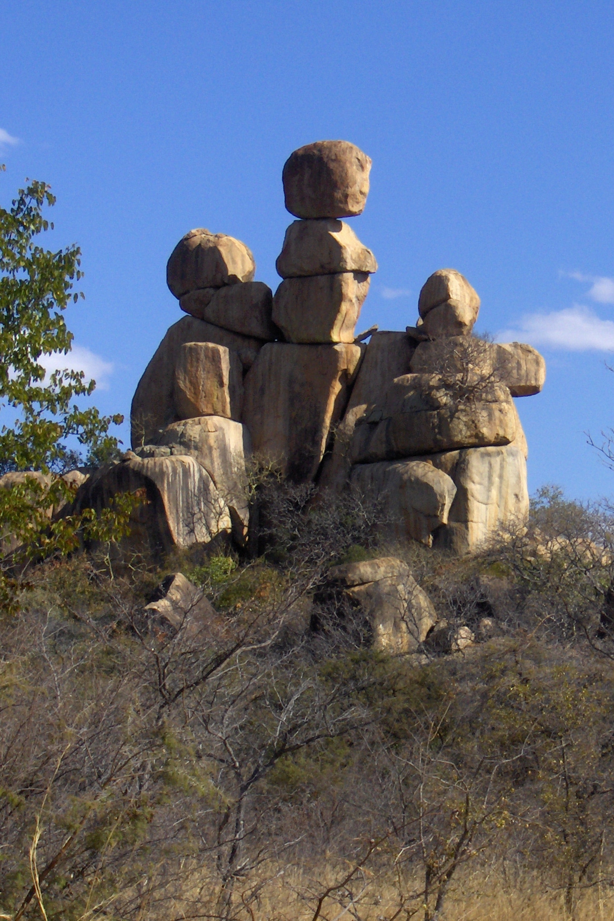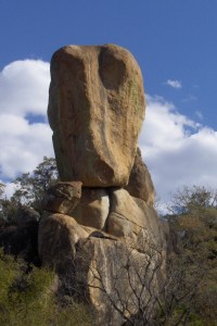 After a roaming around the city with a Dutch couple I befriended, on Friday the three of us took an organized tour of Matopos National Park. The park is filled with strange rock formations like giant Inukshuks or Easter Island heads stuck on the tops of small mountains. These giant granite structures, perched precariously, seem to act as guardians over the many giraffes, rhinos and other typically African fauna who call this park home. The best part of this park is that rather than hiding in a truck and getting driven everywhere to see the beasts, here you get off your butt and walk around looking for them on foot.
