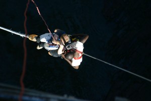 By the time I quit bobbing up and down and they were able to raise me back up to the bridge, the whole thing was over in about 4 minutes. It seemed a lot longer than that. But the scenery (upside down) was beautiful.