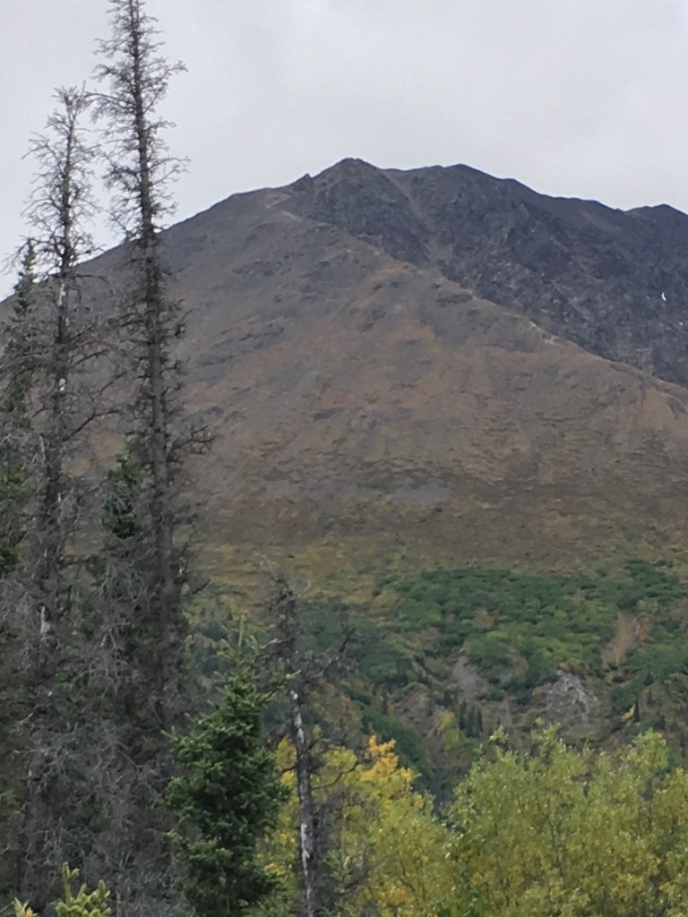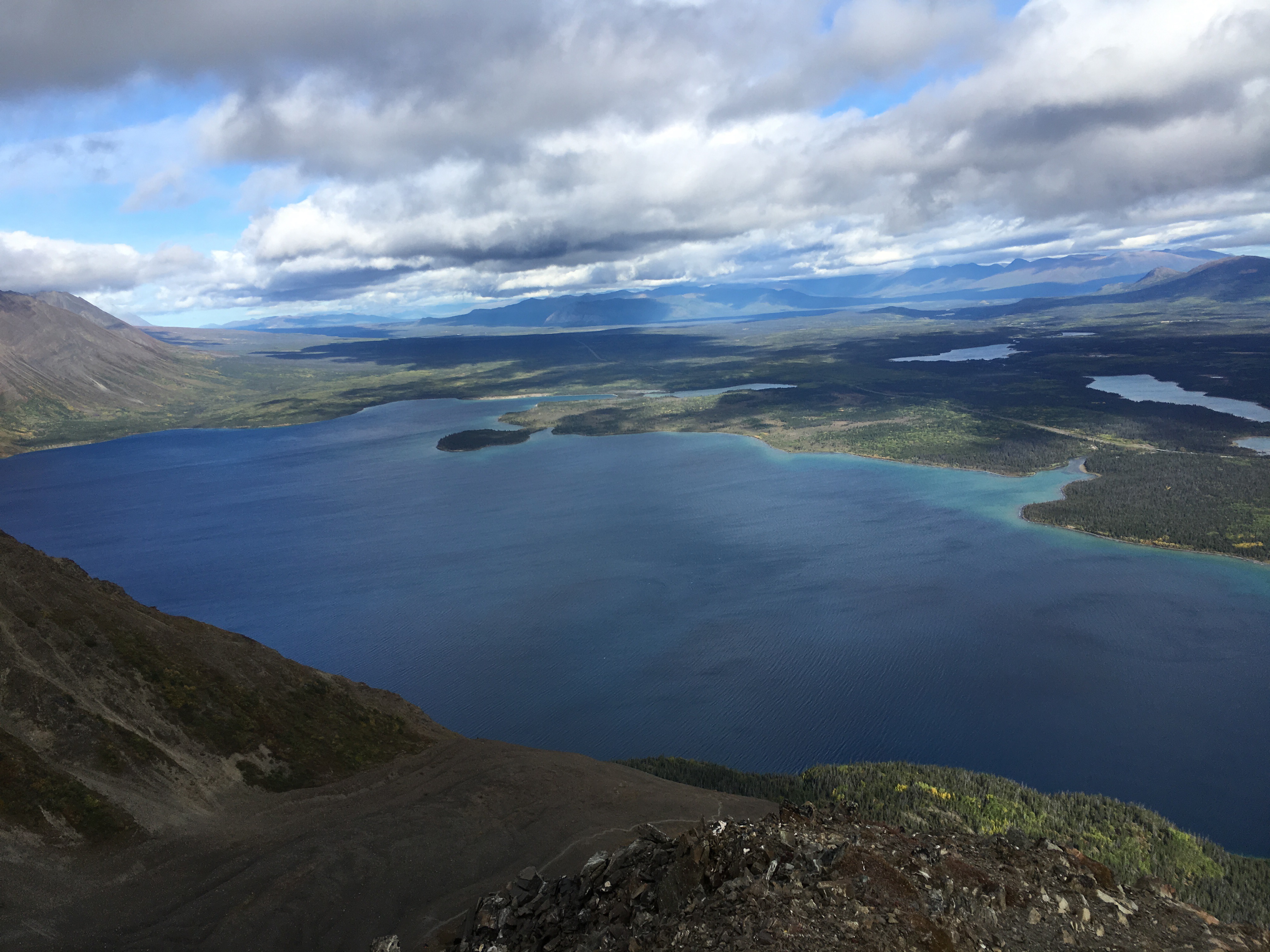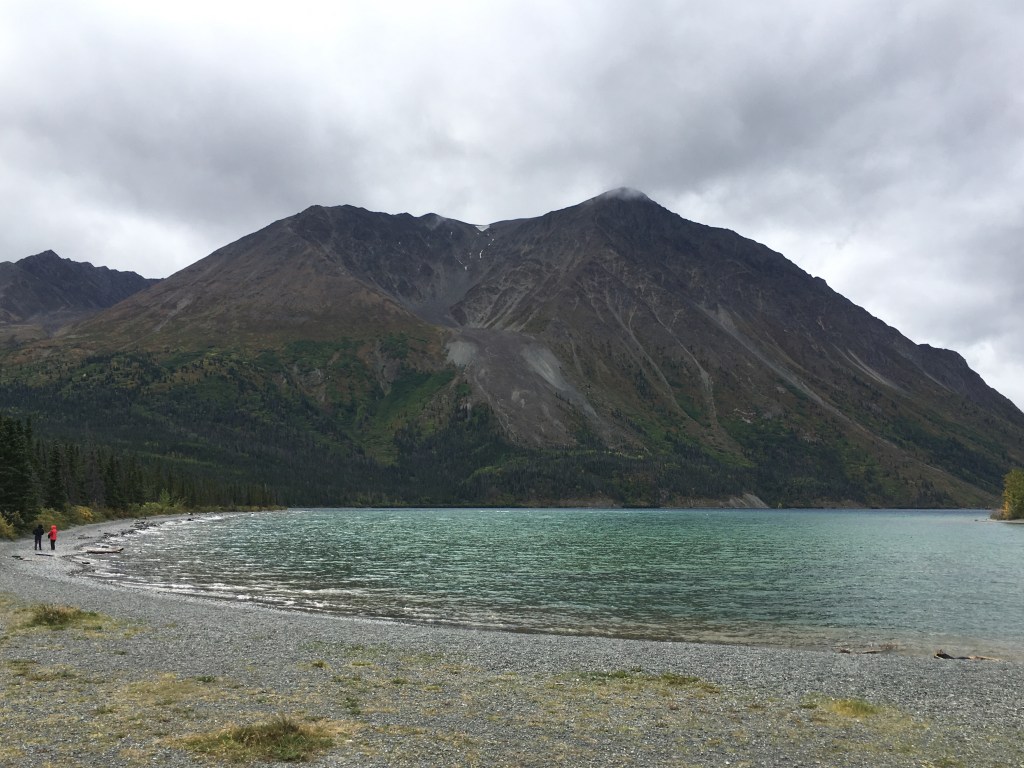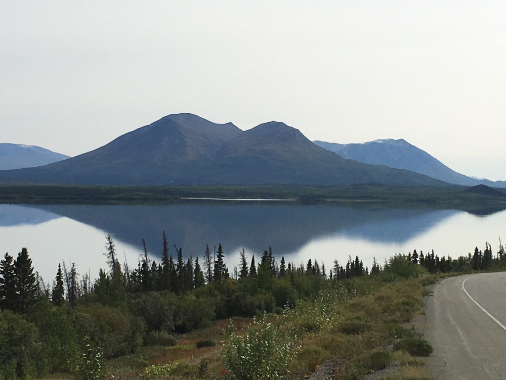 The next day I decamped as my plan was to relocate to a campground I saw on a map in northern BC on the Haines highway to pre-position myself for a hike there. But first I would hike the King’s Throne mountain near Kathleen Lake. The trail takes you halfway up the mountain to a ledge. At 550m up from the base and with the summit looming another 710m above you like the back of a colossal chair, you felt like you’re on a throne of sorts. The view of the valley was impressive. Seeing a trail continue up toward the summit along the shoulder of the mountain, I decided I would give it a go. I began the assent and realized that my boots could not grip properly on the fine gravel. I kept climbing slowly along the sharp ridge but after gaining another 250m of altitude with unsure footings and my fear of heights starting to kick in, I began doubting my decision to climb further. Add to that there was not a soul in sight anywhere to assist if I got into trouble and the weather seemed to be turning worse. Reason got the better of me and I gingerly crept back down to the safety of the throne with feet slipping out from under me on several occasions. I heard later that if I had just kept going a bit further I would have reached the more levelled off part of the trail and the summit would have been a piece of cake. D’oh! Stupid reason!