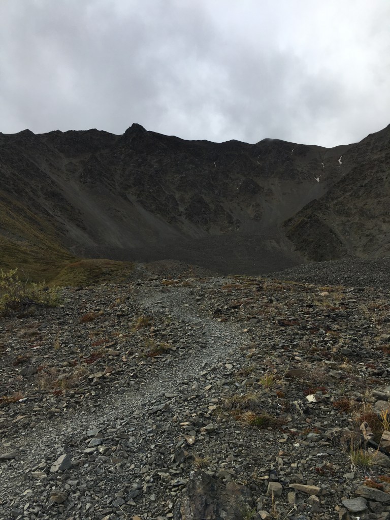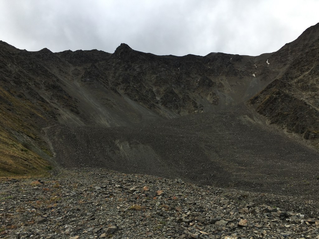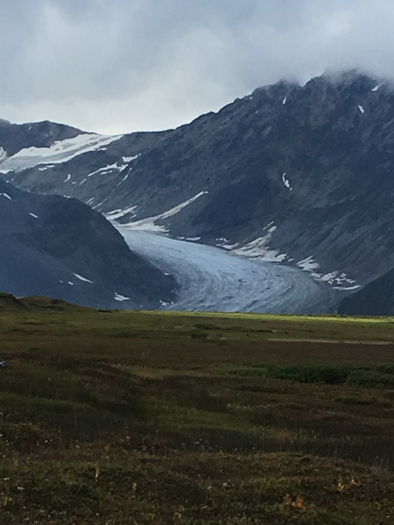 The hike was relatively easy – mostly flat – a few glacial streams to ford. I made good time but started to get antsy about the time as I closed in on the last kilometre. I might have gone for it but that last kilometre was without trail and I would have had to cut a much slower path through wet, boggy terrain. I made my way a few hundred metres closer but decided to turn back as the bog became increasingly boggy. The view was cool though!