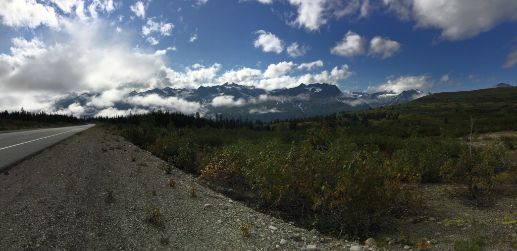 I headed west to Haines Junction in the foothills of the towering St. Elias mountains. The approach to Haines Junction is dramatic as the snow capped monsters are obscured by smaller mountains until you make the last turn, and there you are. The town itself is sparse but has most amenities you would need after a day of hiking or a week of back-country camping. Most impressive of the place is the backdrop of mountains in front of even higher snow-capped mountains. The scene feels like stepping into a medieval gothic cathedral and your eyes need to adjust to the layers of detail in the vaulted ceiling above you.