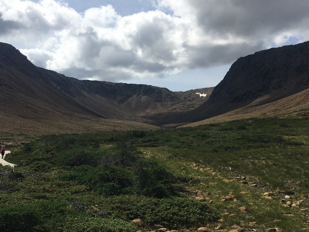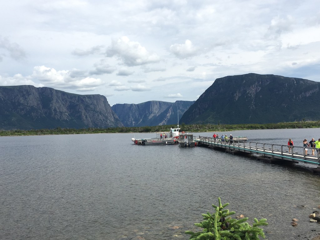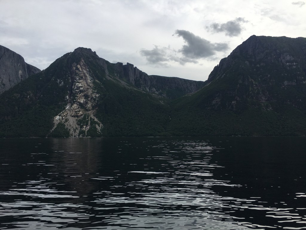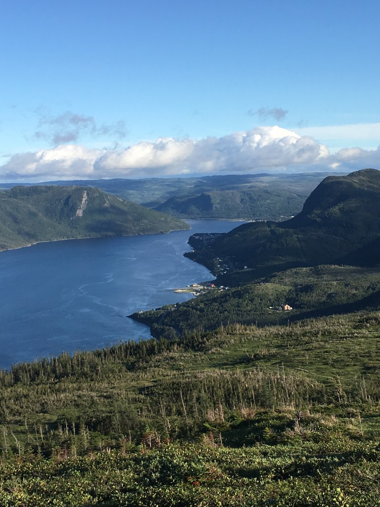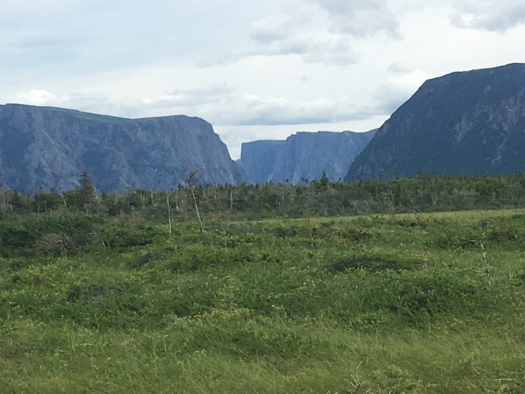 I arrived at the park on Wednesday afternoon (Aug. 8) in drizzling rain and set up camp in Lomond campground, on the shore of the East Arm of Bonne Bay. The campground provides a million dollar view of the bay and surrounding forested mountains. I jumped in the car and set out to get some supplies in a nearby village and then decided to grab some fish and chips at a pub to wait out the weather. An hour later (around 5 pm) the sky was clearing and I set out to hike the Lookout Trail, so named for its view of Bonne Bay and the Tablelands. The trail leads up to a central vantage point where one can see the various landmarks of the park – in one direction, the Tablelands; in another, Gros Mountain. And while standing there admiring the view I thought back to my trip here 20 some years ago and wondered where the time went.