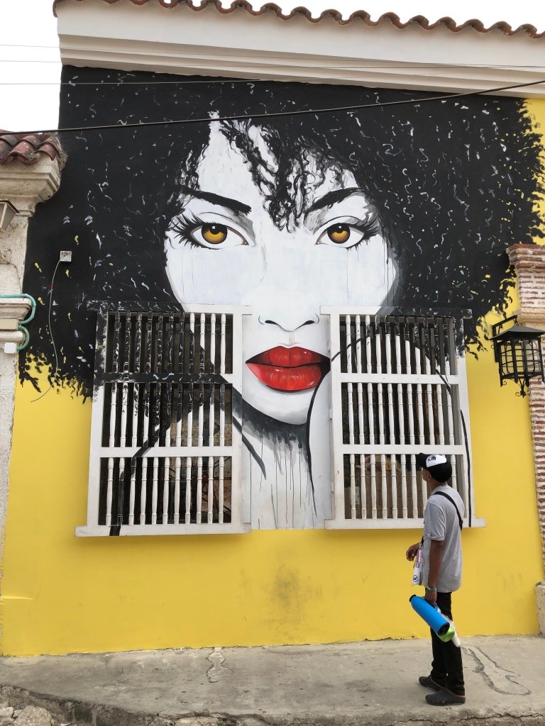 Two days later I was off to Santa Marta in preparation for the hike. It’s a port town, also on the Caribbean, and with none of Cartagena’s charm. The did have some nice street art: