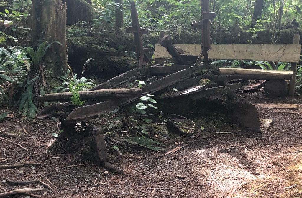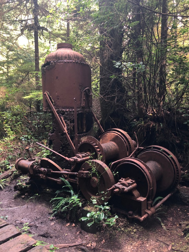 Offshore from the trail is a graveyard of sunken ships, none of which are visible today. There are some cool relics of past logging activities and even an old motorcycle that we came across our first day.