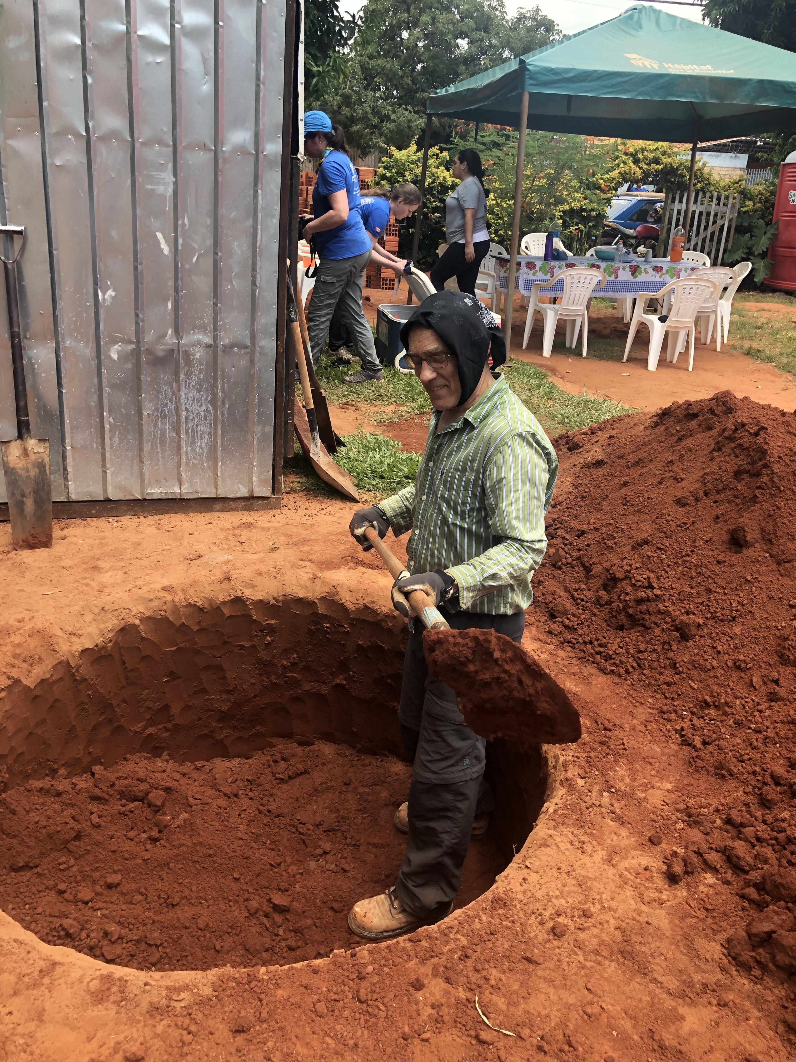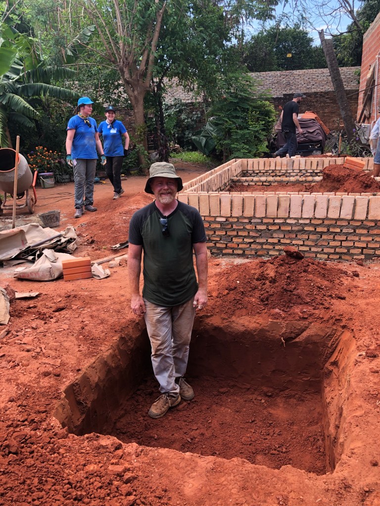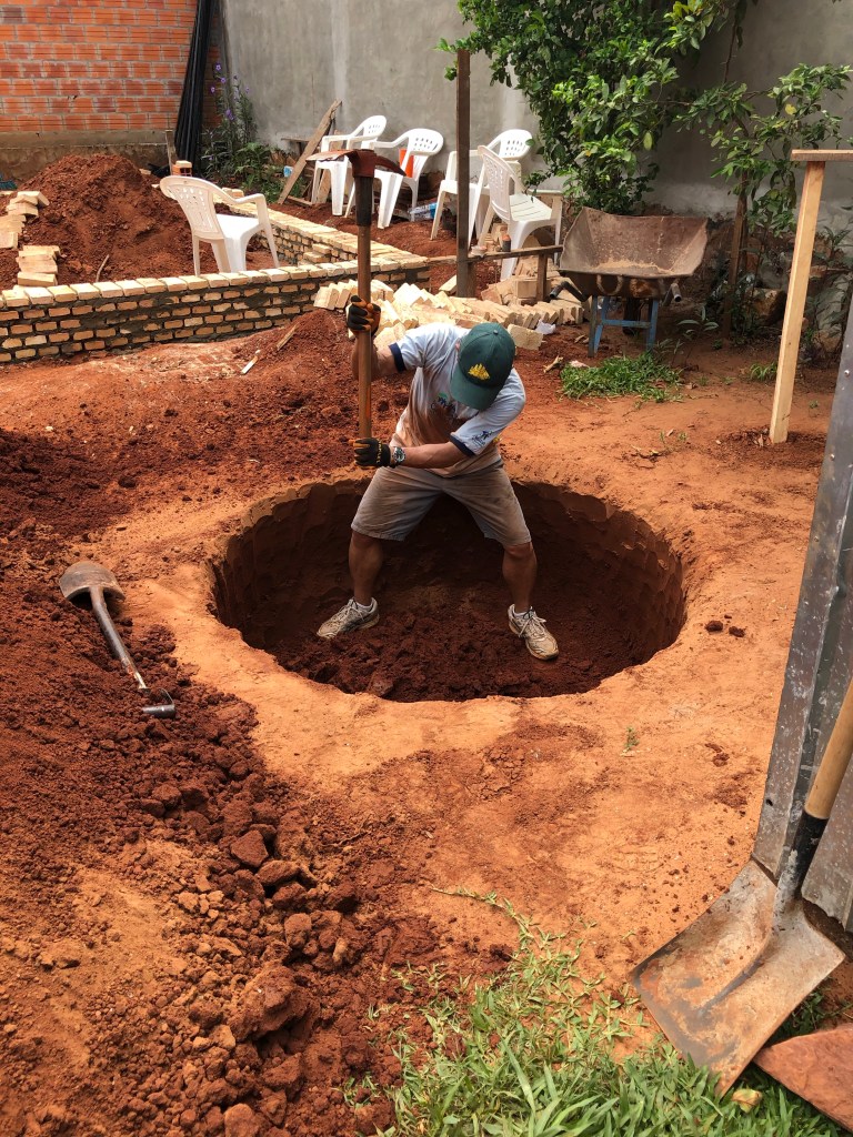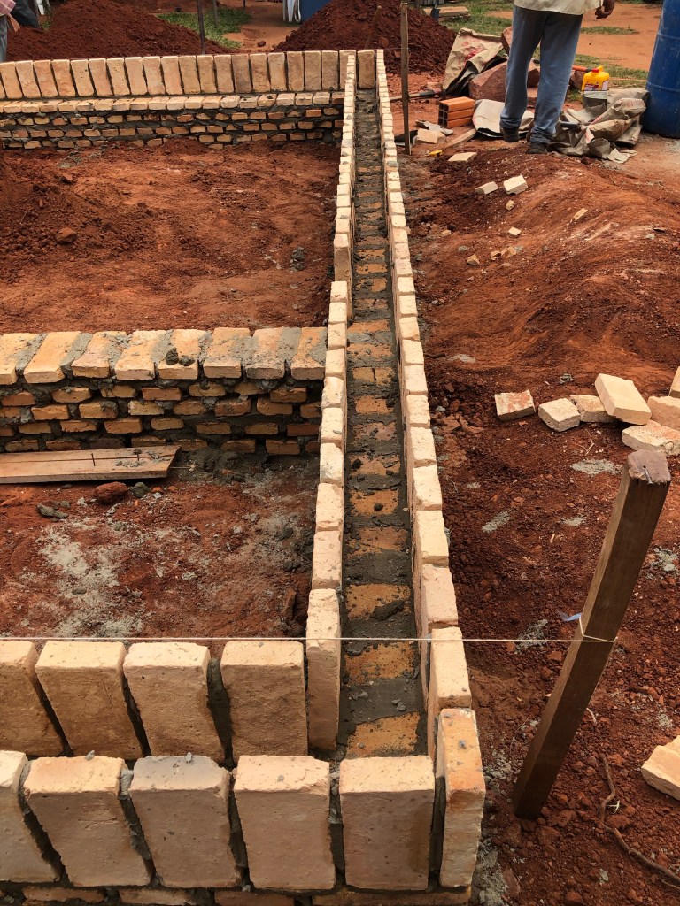 While the masons were laying bricks some of us were tasked with digging the latrine and cesspool. With no residential sewage service in this area, the indoor toilet will be connected to a latrine and cesspool system.