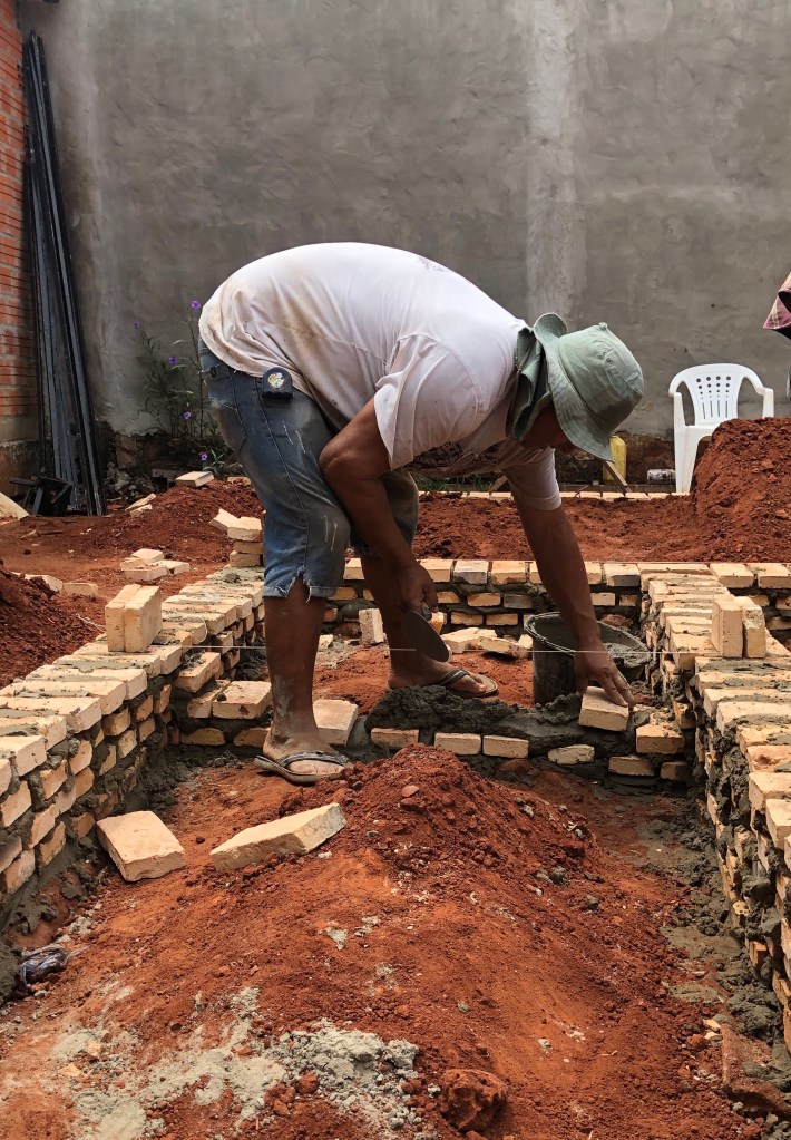 Later when we arrived at the build site, the masons were already hard at work laying the foundational bricks.