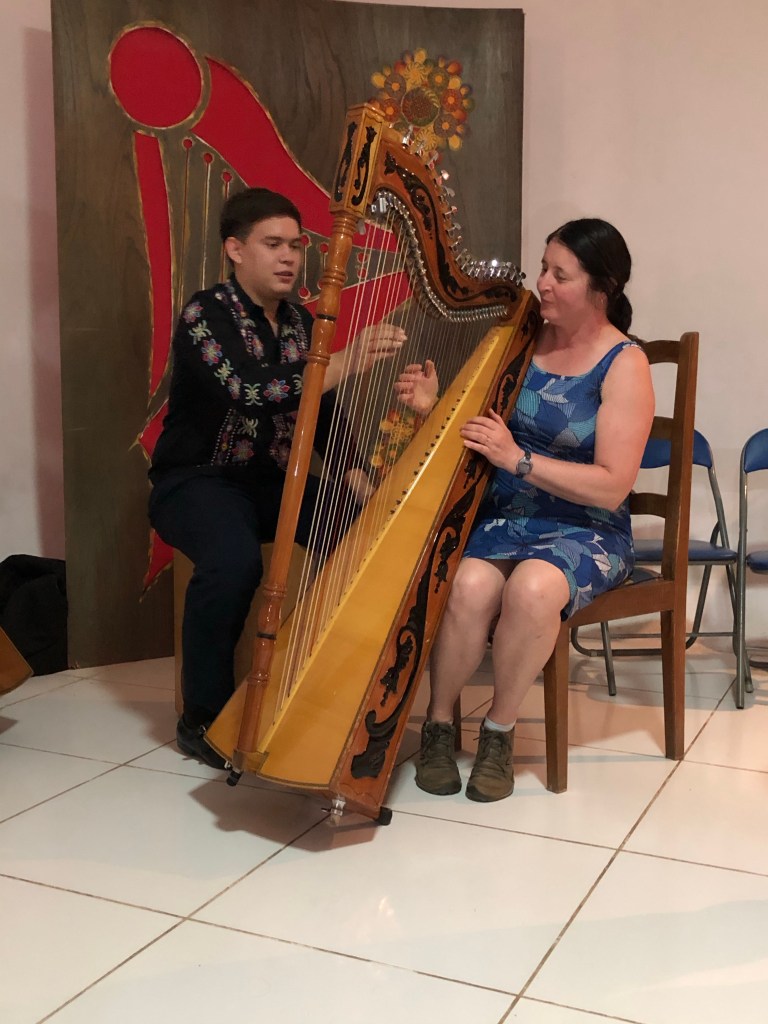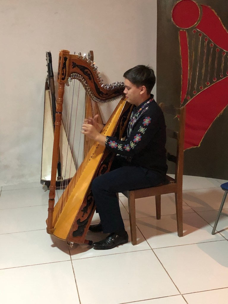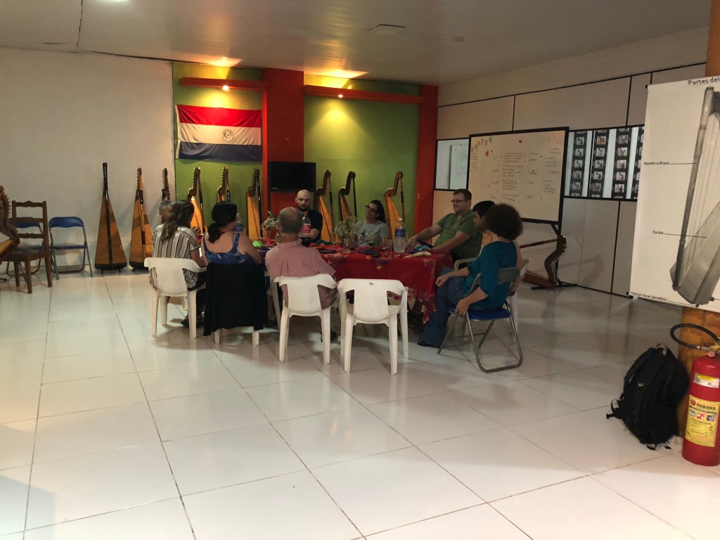 Dinner tonight was very special. We were hosted by the local harp music school. The harp is the national instrument of Paraguay. The practice room doubles as a makeshift restaurant in the evening and often the students will play for the customers. Because we were a big group we had the place to ourselves. The young musician, Adrian, was very talented and played for us a combination of traditional Paraguayan music and contemporary songs like the Beatles and Coldplay.