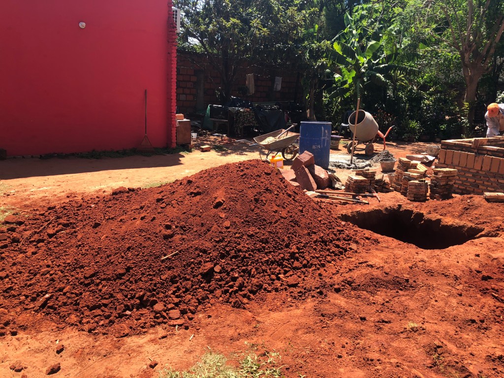 The photo below gives you an idea how much dirt and clay had to be removed for the latrine pit.