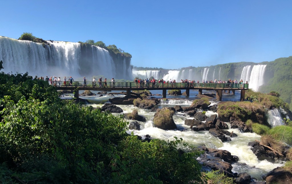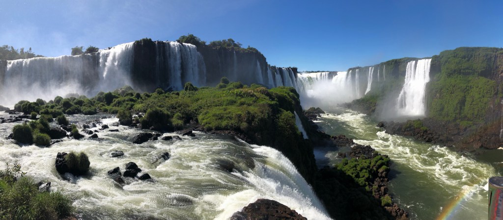 We arrived in Ciudad de l’Este, Paraguay’s bordertown with Brazil, around 9pm, had dinner at a Lebanese restaurant and then crossed the border to Foz do Iguazu. We spent the night in a hotel and headed to the falls the next morning. The 200+ falls that make up Iguazu are truly spectacular.