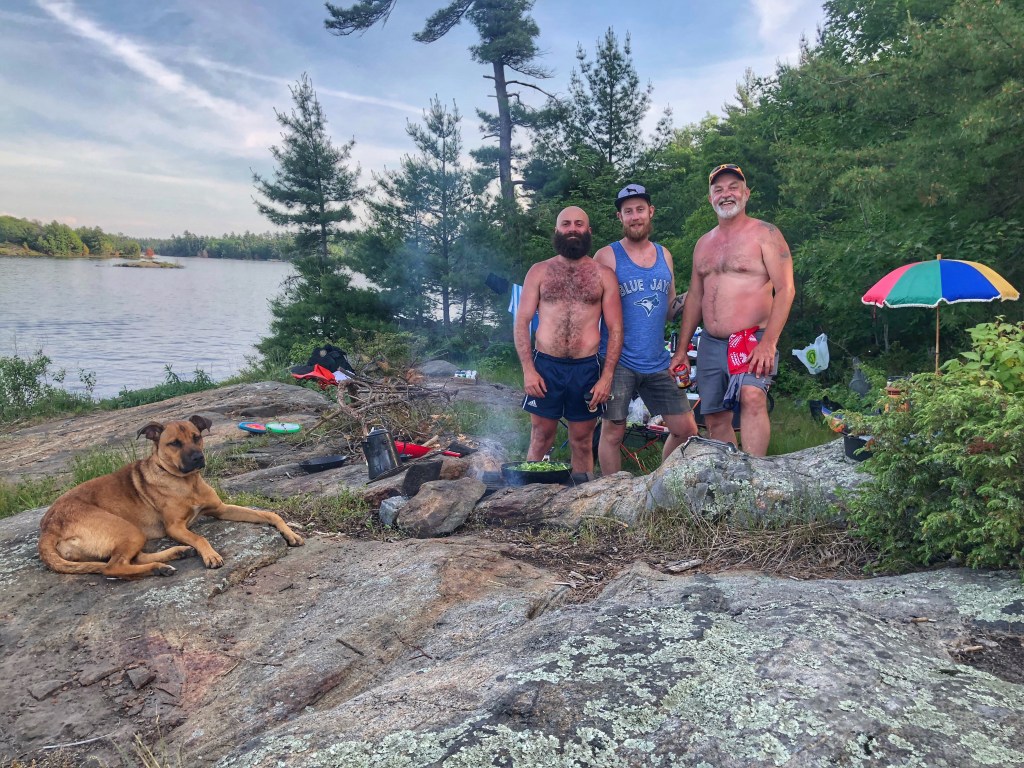 My partner and I invited friends of ours to join us at our first stop on Ontariomania, the gorgeous Massassaga Provincial Park, located south of Parry Sound. The park is a series of islands in the midst of cottage country. Access to the park is by canoe only and you have to paddle by cottages to get to those coveted provincial park campsites. The two-and-a-half hour paddle was worth it though as we were rewarded with our own island. The one drawback of the park is that the cottage owners (whose cottages are often water access only) travel to and fro by motor boat, which can be noisy and disruptive to small watercraft like canoes. Luckily, there are plenty of moments when there are no boats and the water is like glass, or well glass with loons in it.