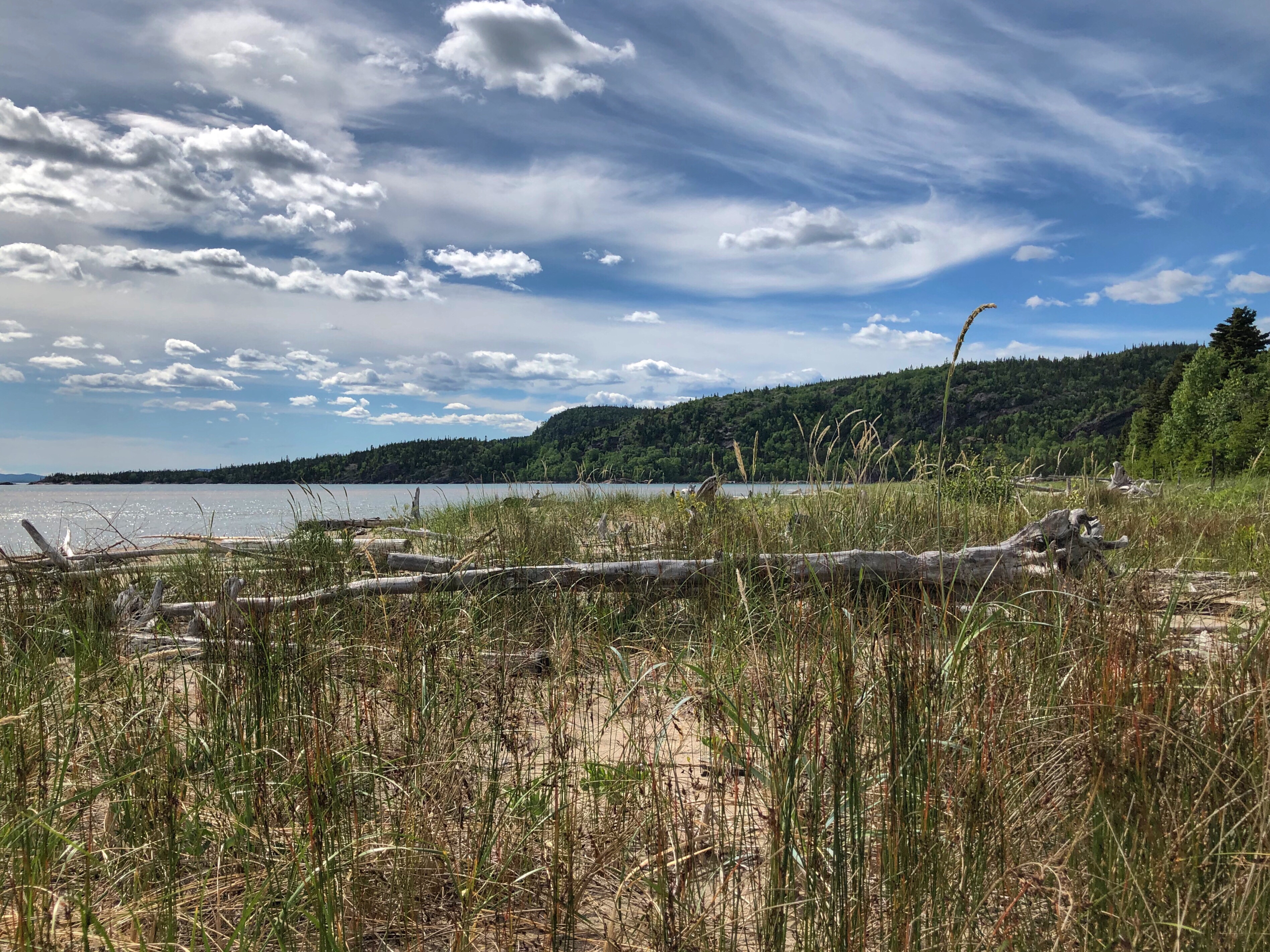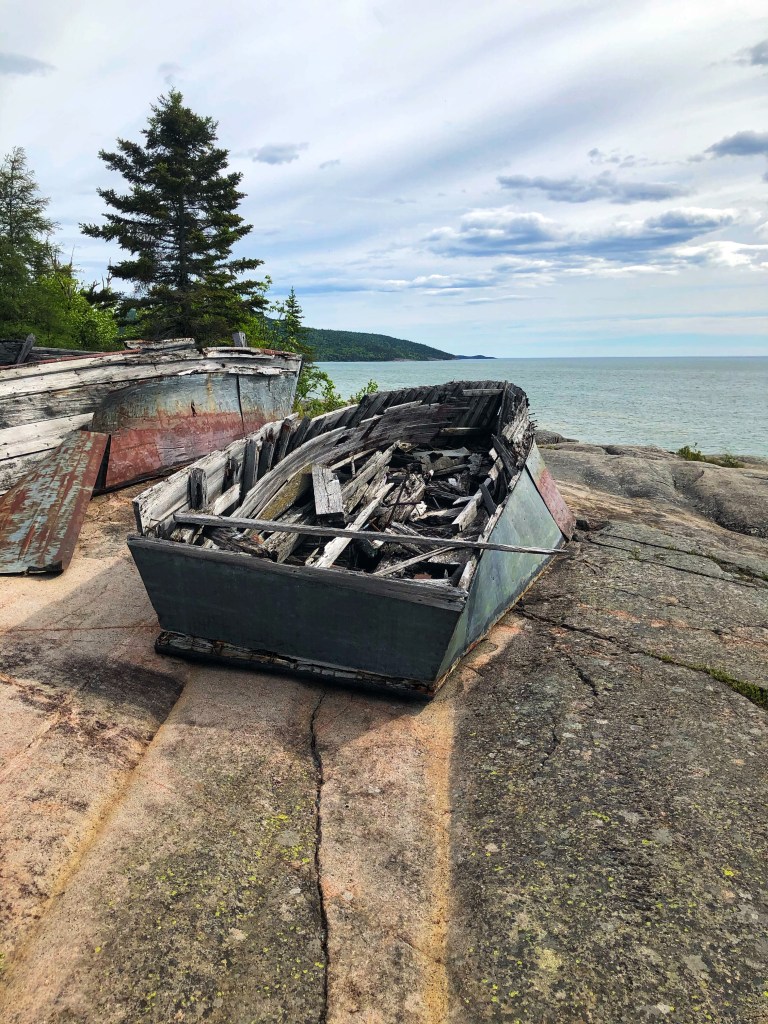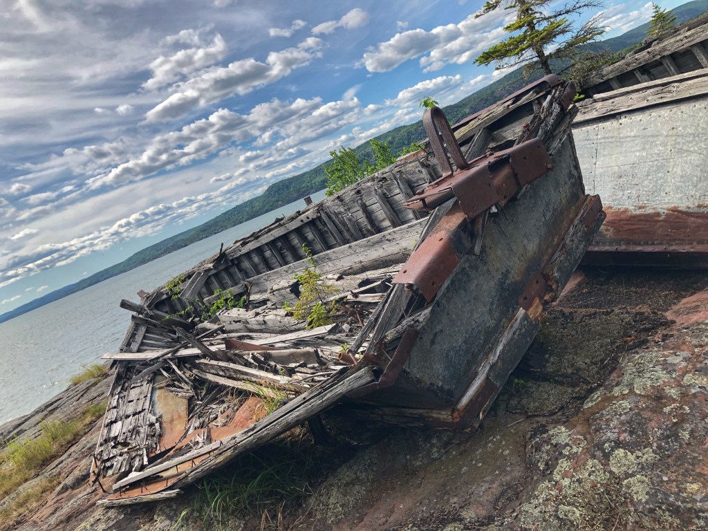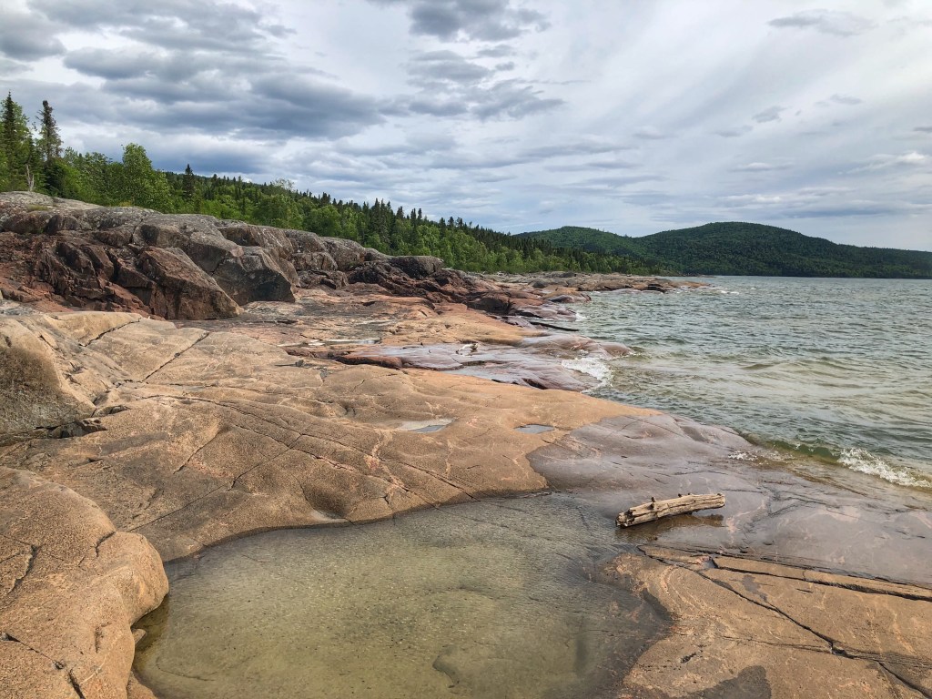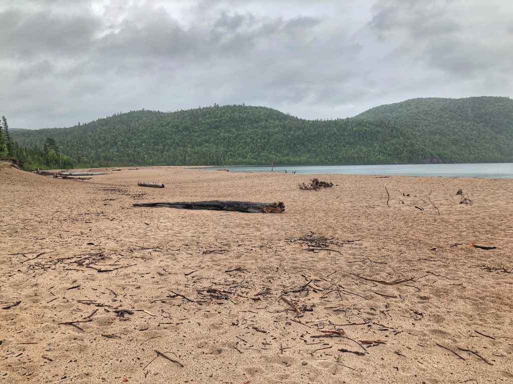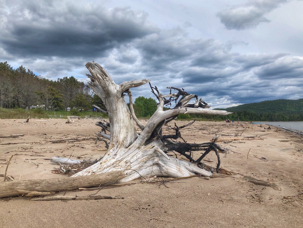 Our next stop was Neys Provincial Park on the north shore of Lake Superior. The park’s greatest feature is it’s gorgeous natural sandy beach. The park is also home to a few log driving boat specimens, propped up on the rocks for anyone to check out. Neys was a reminder to us of how insensitive Lake Superior can be to fairweather travellers. The water temperature was at hypothermia levels (perhaps just the way the current was that day) and the air temperature that night went down to 4C.