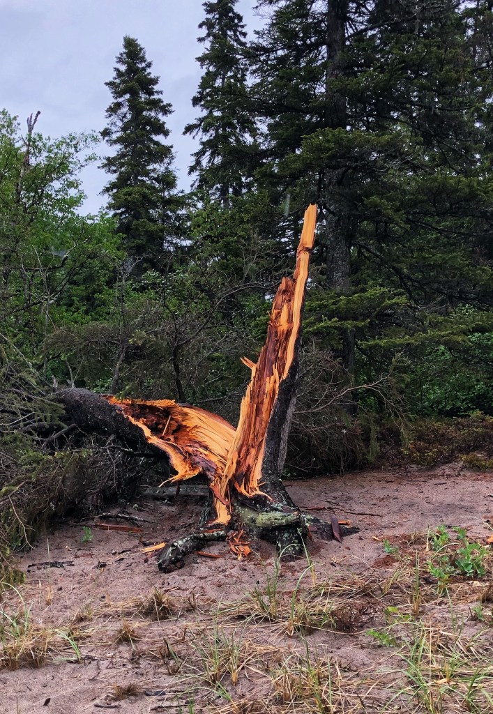 Between the heavy tree canopy and a decently rigged tarp, we had enough dry space to get through two days of significant rainfall. Unlike elsewhere on Lake Superior, the eastern shores are essentially a rain forest, with significantly more vegetation and more hardwood deciduous trees than you might expect this far north.