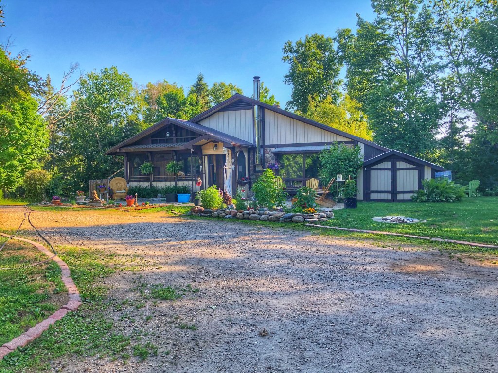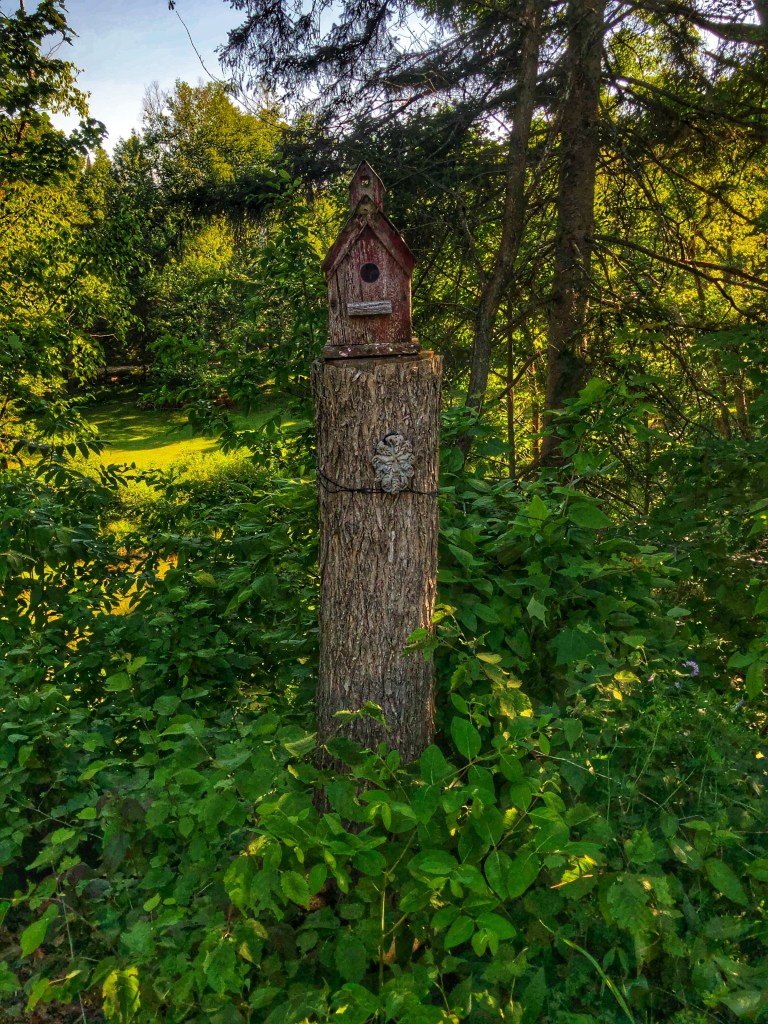 Our next stop was Bancroft, where we would visit with my partner’s friend. She owns this lovely house on the edge of town and on the shore of the York River. Her gardens were beautiful with some quirky and fun decor.