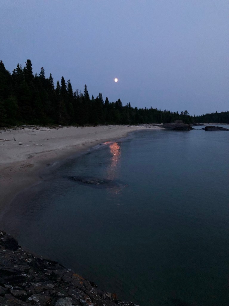 There’s no cell phone service in the park but we did have the presence of mind to check the forecast before leaving the park gate the day before. We knew a storm was coming and could see it in the sky on our second day. Knowing that most of the camping on the shoreline trail would be in open arras close to water, we decided to play it safe and not hike all the way to Morrison Harbour. Instead we camped at Willow River in the shelter offered by the trees.