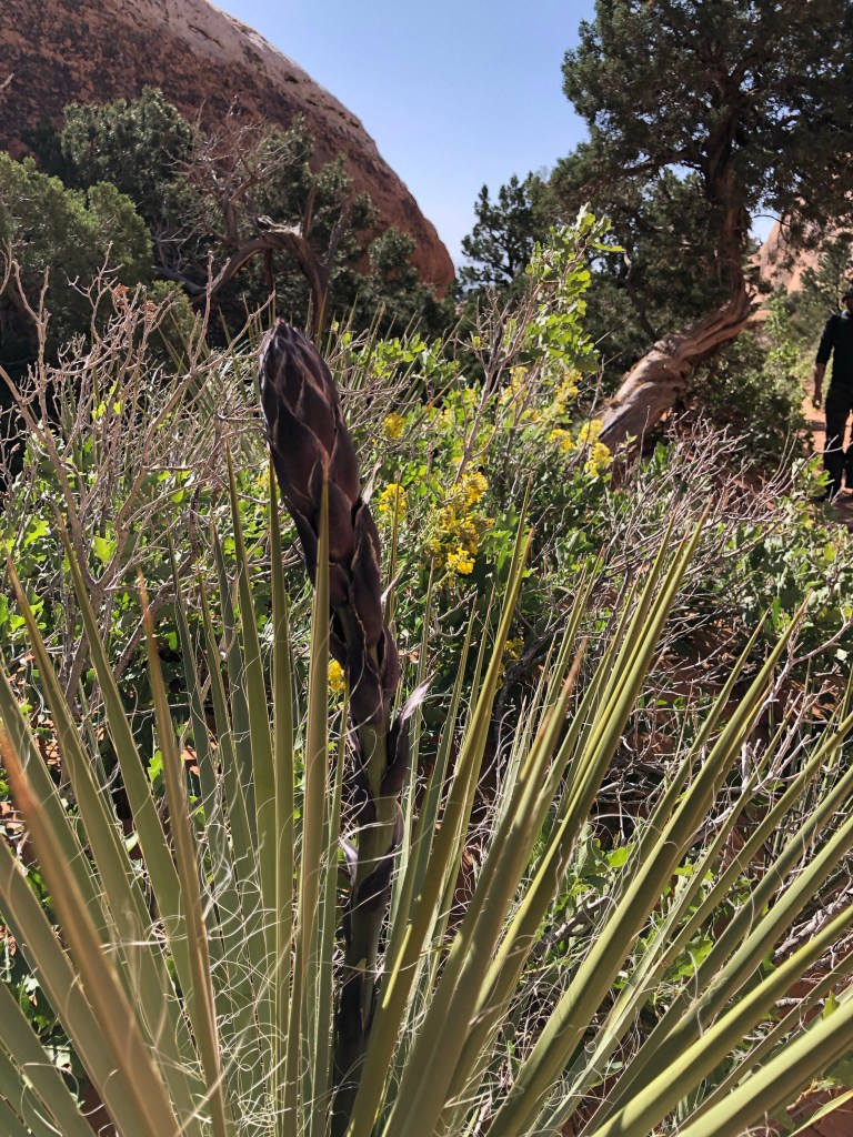 Utah is a desert state and so we expected its landscape to look different than what we’re used to. But I don’t think we were prepared for how different. This entire area is the artwork of the forces of millions of years of erosion through the sandstone of an ancient seabed. Everywhere you go are canyons, arches and other weird land formations that change in appearance by season and by the light of the day. We are here in late spring and we’re seeing flowers and greenery that would be uncommon to see in the heat of full summer. As it is, daytime temps are reaching 30C and the dryness takes some getting used to.