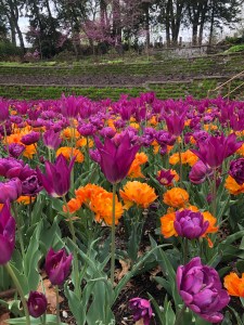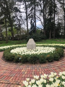 Friday we continued on I-80 west through Iowa and into Nebraska. These states are not generally on anybody’s radar in terms of tourism but I love prairie vistas. We were making good time so we stopped in Lincoln and visited the very fine state capitol (at least the outside of it). We also visited the sunken garden down the street and caught the tulip display just at the tail end of tulip season.