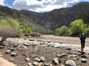 Yesterday’s drive through Colorado started in the high plains of the state park (4400 ft altitude) and brought us through Denver and over the continental divide to the drier western part of the state. A word about I-70, this highway is a must see through the Rockies. After leaving Denver and crossing a 10,000 ft pass you descend the other side and meet up with the Colorado River. In a stunning feat of engineering (but by today’s standards is an ecological catastrophe) a 4 lane freeway competes for real estate with a hundred million year old river. It’s cool to drive through the canyon but you can’t help but wonder what it looked like before humans altered the landscape.