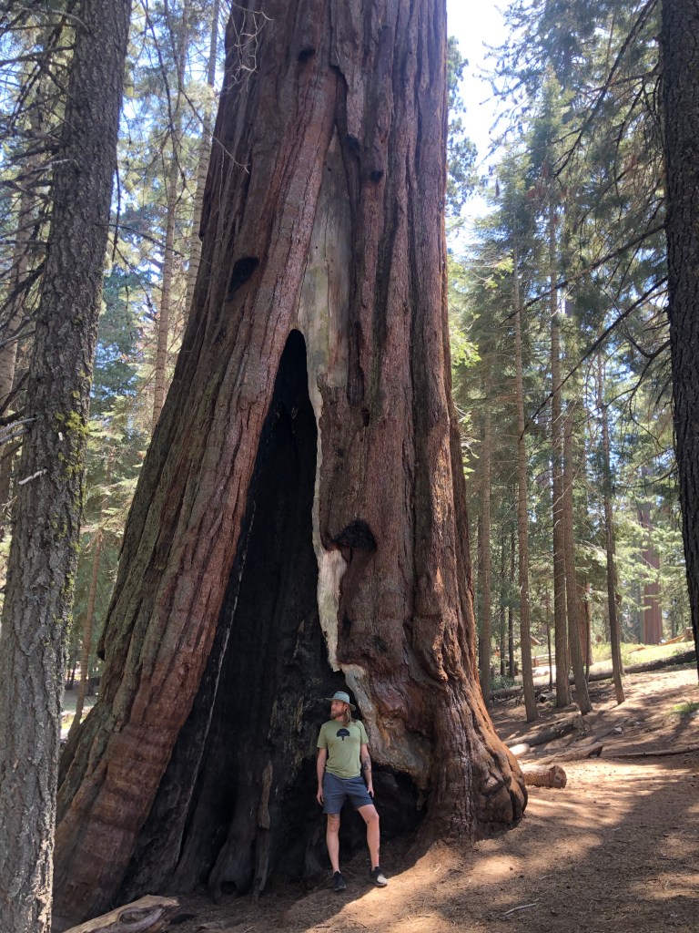 As we drove through the park one could see the devastating results of last year’s mega fire that destroyed swaths of forest through the park. Charred remnants of tree trunks were all that remained on some mountain faces. Deciduous trees that weren’t in the immediate area of the incineration died of the intense heat. I overheard one guide explain to a group of tourists that 20 per cent of the old growth trees in the park were killed in 2 years of fires. While Sequoias need regular fires to reproduce, the mega fires of recent years burn hotter than what the insulating bark of these giants can handle. The guide also explained that when he started guiding 7 years ago his answer to the question, “what causes Sequoias to die?” was “gravity”. Essentially the trees died only when they got too tired to stand or the lost their footing in eroding soil. Twenty years of drought and the onset of megafires have changed the story completely.