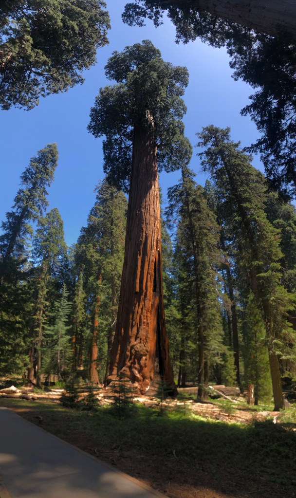 We entered Sequoia at Three Rivers and drove the Generals Highway, a switchbacked cow path of a paved road that climbed the western face of the Sierra Nevada range. Having limited time and attempting to avoid the heaviest crowds we gave the rockstar General Sherman tree a miss and instead browsed the Big Trees Trail. With its open meadow in the centre one can get good perspective on how huge these trees really are. The big space also meant the crowd was dispersed over a larger area and you didn’t have to scramble to take photos through a sea of golf hats. The biggest challenge with photographing them is the sheer size makes them nearly impossible to frame. I ended up having to take freehand vertical panoramic shots so excuse the wobbly look of the pics below.
