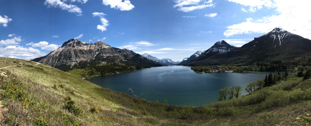 After leaving Banff our next destination was Waterton Lakes National Park in the extreme southwest of Alberta along the US border. Instead of driving east toward Calgary we decided to duck back into BC and follow highways 93 and 95 through Kootenay National Park. Backtracking into the interior Rockies through Vermilion Crossing, the highway brings you through the broad Kootenay River valley, walled in on both sides by snow capped mountains. The region is known for its high winds and hot temperatures in the summer so forest fire damage is abundantly evident on the mountainsides. Unlike Banff and Jasper, a lot of Kootenay’s trails and facilities were still closed. Had we been passing through a couple of weeks later we might have spent time in this park.