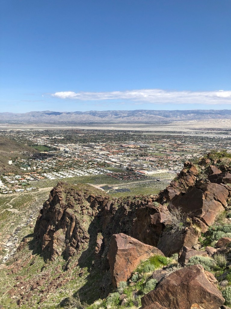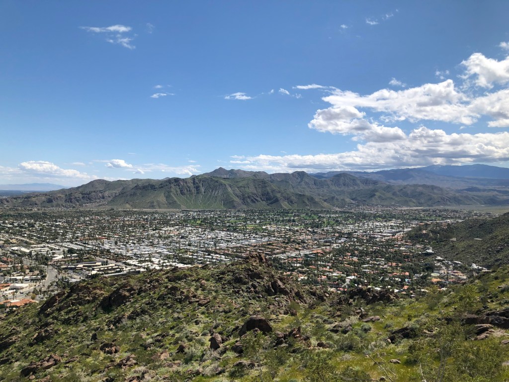 We landed in LA March 16 just days after the last of several atmospheric rivers drenched coastal California and dumped metres of snow in the Sierra Nevadas. Even lower altitude mountains on our drive to Palm Springs had snow on them and there was water pooled in fields along the road. The mountains immediately around Palm Springs were strangely green – like something out of Ireland. The last time I was here was it was a blazing hot September in 2012 when the landscape was parched and seemingly devoid of life.